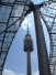 Aussichtsplattformen und Treppen trägt und einem Netz aus Stahlseilen, welches die Konstruktion zusam-