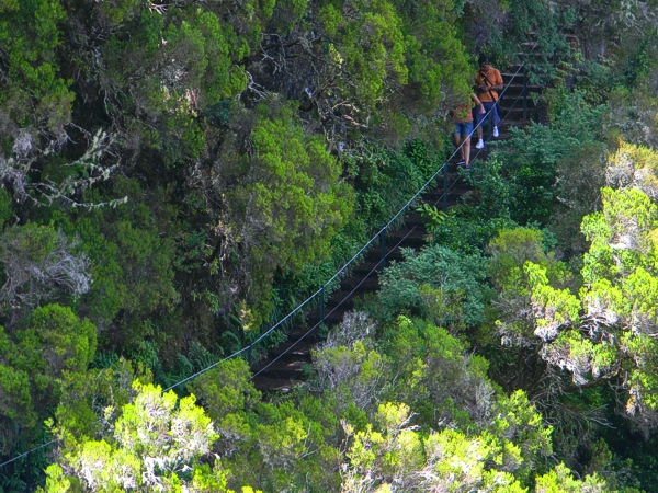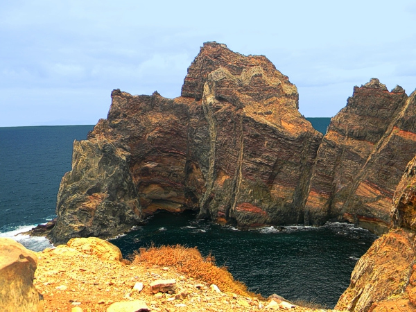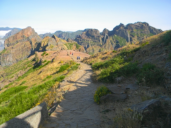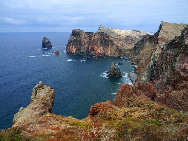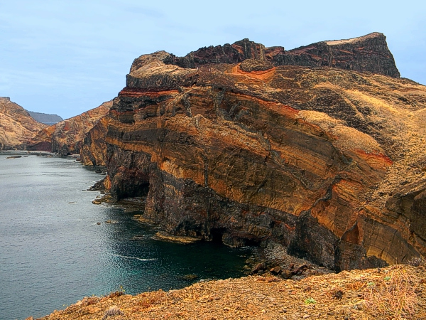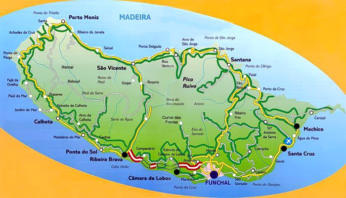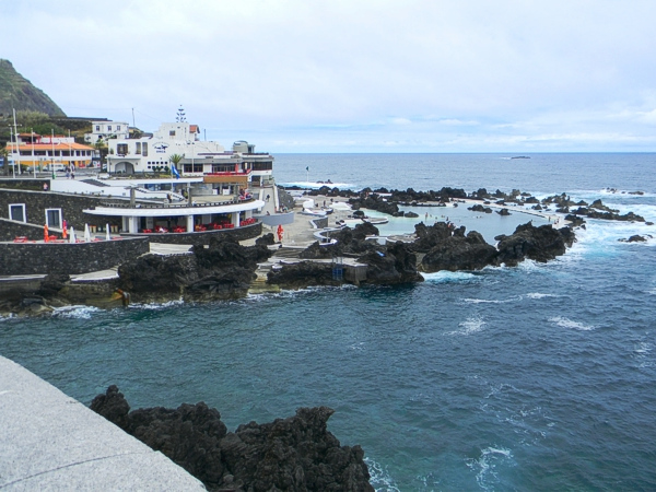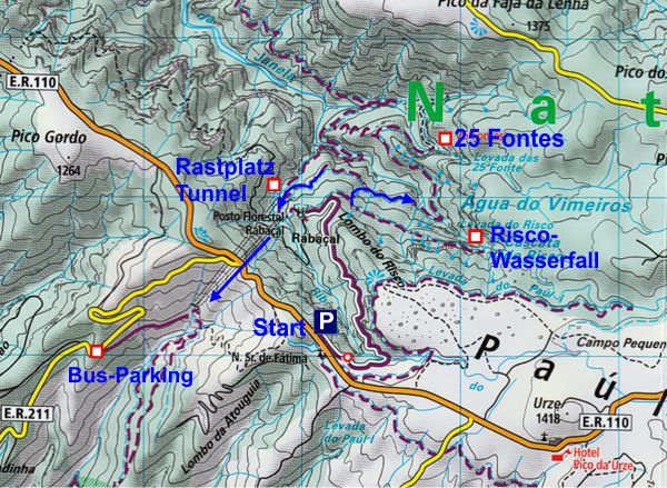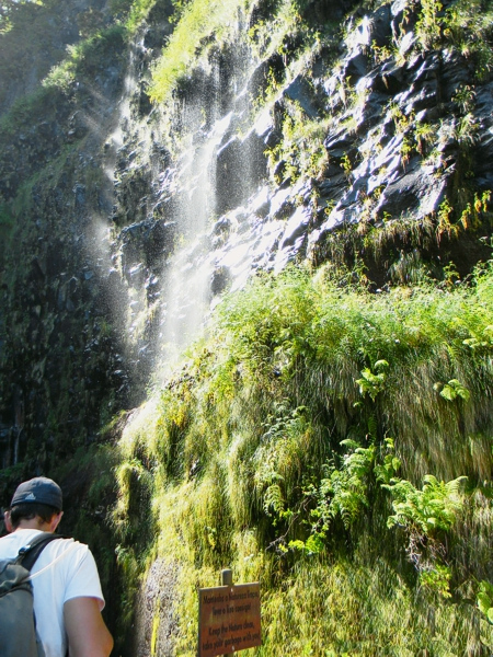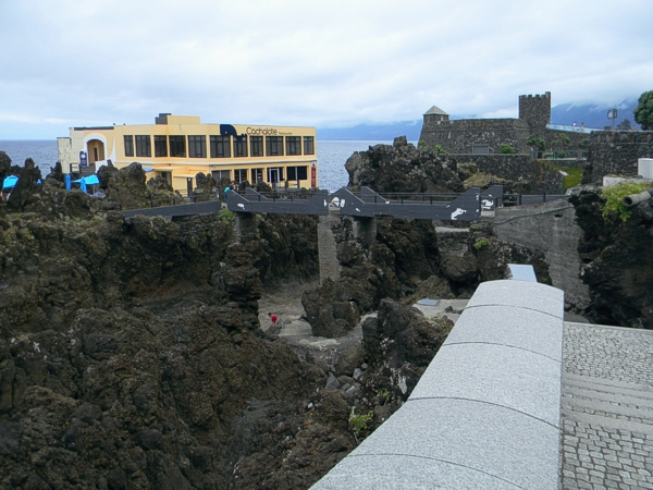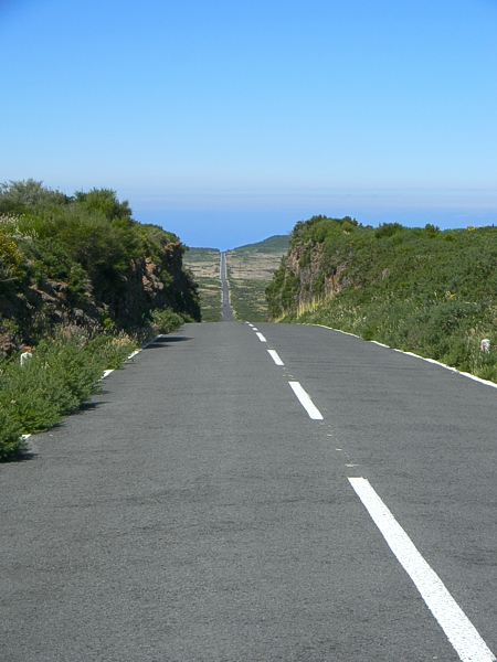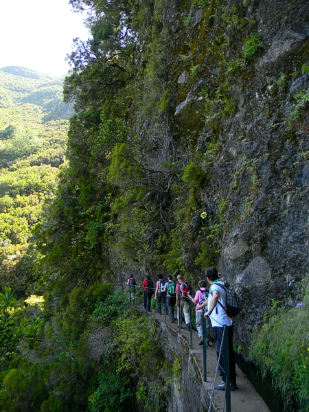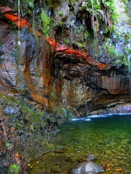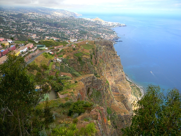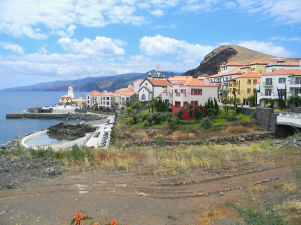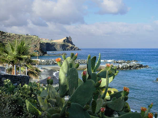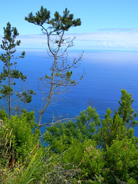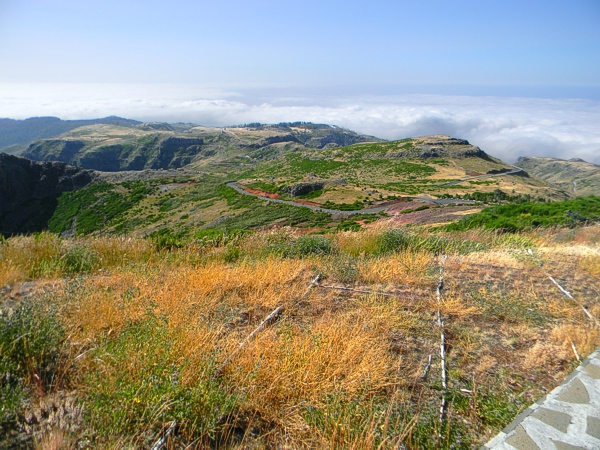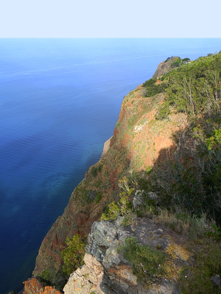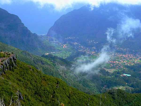 Die ER101 führt dann weiter nach Ponta Delgada. Unterwegs steht man dann plötzlich vor dem winzigen, stockfinsteren Loch eines Tunnels. Die Straße ist hier nur in einer Richtung befahrbar. Es gibt keine Verkehrszeichen und keine Ampelanlage. Wer dann auf gut Glück reinfährt, sollte besser die Fenster ge-schlossen halten, weil drinnen tropft und trieft Wasser von der Tunneldecke.Nach einer schönen Fahrt entlang der Küste erreicht man den Ort São Vicente. Der eigentliche Ort ist vom Meer durch einen Felsvorsprung getrennt, und bot so einst guten Schutz vor Piraten. Neben der barocken Pfarrkirche aus dem 17. Jh. sind die ‘Grutas’ ein Anziehungspunkt für Besucher. Diese von Lavaströmen vor ca. 890.000 Jahren geschaffenen Röhren kann man auf einem rund 700m langen Rundweg besichtigen. Die Führung dauert etwa eine Stunde und enthält auch einen Besuch im ‘Vulkanzentrum’ nebenan. Da gibt es Informationen zur Geologie Madeiras und auch ein paar witzige Showeffekte. Auf dem Gelände kann man auch in den ‘Jardins de Água’, den Wassergärten, entspannen oder sich im Souvenirgeschäft umsehen.Die Straße VE4 verläuft durch einen 3 km langen Tunnel und wird dann zur ER104, welche bei Ribeira Brava im Süden der Insel zur Autobahn VR1 führt. Ribeira Brava ist eine der ältesten Ortschaften der Insel Madeira. Sie verdankt ihre Bedeutung der lokalen Gebirgsformation, die durch einen Wildbach durchquert wird, der früher reißende Wasser mit sich führte, weshalb der Bach den Namen ‘Brava’ (wild, ungestüm)erhielt. Umfangreiche Baumaßnahmen zur Zähmung des Wildbachs erstreckten sich 2014 entlang der Straße auf ca. 8km Länge vor dem Ort.Von hier sind es rund 15km nach Funchal, etwa in der Hälfte liegt ein sehenswerter Aussichtspunkt. Das Miradouro ‘Cabo Girão’ (’Kap der Um-kehr’) liegt 580m hoch über dem Meeresspiegel an einer senkrecht abfallenden Klippe und bietet einen atemberaubenden Ausblick. Eine Plattform wurde etwas über den Felsen hinaus gebaut, sodass man durch die leider schon sehr abgewetzten Glasplatten nach unten sehen kann. Neben dem großen Parkplatz gibt es auch Souvenirgeschäfte.Von Ribeira Brava westwärts kommt man zunächt nach Ponta do Sol. Die Stadt mit ca. 4500 Bewohnernwurde bereits um 1450 gegründet und erhielt 1501 die Stadtrechte. Sie war lange ein Zentrum des Zuckerrohr-Anbaus, heute sind es Bananenplantagen. Im Ort befindet sich einer der größten Verpackungsbetriebe für die Früchte, die dann per LKW nach Funchal und weiter gelief-ert werden.Auf dem Weg weiter nach Westen Richtung Madalena do Mar bekommt man eine kostenlose Autowäsche. Ein Wasserfall ergießt sich mitten auf die Straße - Pech für Cabriofahrer, die das Wagendach nicht rechtzeitig schließen konnten. Die nächste größere Stadt entlang der Straße nach Westen ist Calheta. Von dem ehemaligen Zentrum des Zuckerrohranbaus ist nur noch die Ruine einer Zuckermühle geblieben. Doch eine Zuckerfabrik ist heute noch in Betrieb und stellt Zuckerrohrhonig, Sirup, Rum, Zuckerrohrschnaps und andere Rohzuckerprodukteher. Die Stadt hatte einen eigenen Zollposten für Exportzucker von Madeira.Die weitere Fahrt nach Nordwesten und Norden entlang der ER101 ist recht kurvenreich. Den vielen Hin-weisen zu Aussichtspunkten bin ich nicht gefolgt - die Wolken hingen tief und ich kurvte bis knapp vor Porto Moniz nur im Nebel umher.Endlich wieder unterhalb der Wolken bot sich bei der Anfahrt bereits ein schöner Blick auf den nordwestlichsten Küstenort Madeiras. Die natürli-chen Meeresschwimmbecken, die von bizarren Felsformationen aus Lavastein eingerahmt und von der Flut mit kristallklarem Wasser befüllt werden, sind sowohl bei den Madeirensern als auch bei Gästen sehr be-liebt. In dem kleinen Fort ‘Forte São João Baptista’ befindet sich heute das ‘Aquário da Madeira’ in dem man mehr als siebzig typische Fischarten der Insel studieren kann.Entlang der Nordküste von Porto Moniz nach Osten fährt man durch viele Tunnels. So sieht man nicht sehr viel von der Landschaft. In der Nähe des Ortes Seixal gibt es einen Aussichtspunkt und einen herrlichen Wasserfall. Da nicht viele Autos unterwegs waren, konnte ich langsamer fahren und an dem Parkplatz für ein paar Fotos anhalten. Leider konnte ich nicht herausfinden, ob dieser Wasserfall auch einen Namen hat - der sogenannte ‘Brautschleier-Wasserfall’ ist es aber nicht.Eine ganz andere Welt bietet sich dem Besucher auf der Hochebene Paul da Serra im westlichen Zentrum Madeiras. Das etwa 102km² große und bis zu 1500m hoch gelegene Hochmoor ist oft in Nebel gehüllt, so auch bei meinem ersten Besuch. Erst beim zweiten Anlauf konnte ich die Faszination dieser Landschafterleben. Die Anfahrt über die Straße ER104 von Ribeira Brava nach Encumeadaist zwar sehr romantisch, doch nach einem kleinen Souvenirladen war die Straße dann gesperrt. So versuchte ich es nochmal über die ER209, die bei Madalena do Mar nach Norden in die Berge führt. Diese Strecke ist auch sehr kurvenreich und teilweise ziemlich steil und eng. Diese Straße führt zu einer Kreuzung mit der ER105 der ich zunächst nach Osten folgte. So erreichte ich den 1620m hohen Gipfel ‘Bica da Cana’. Die tiefer liegenden Wolken versperrten die Sicht, doch gelegentlich konnte ich ein Blick bis and die Küste erwischen.Die baumlose Hochebene spielt eine wichtige Rolle bei der Wasserver-sorgung Madeiras. Das poröse Gestein wirkt wie ein Schwamm und ver-sorgt die zahlreichen Levadas ständig mit Wasser. Unterhalb der Hoch-ebene finden sich Baumheide- und Lorbeerwälder (Laurisilva). Zahlreiche Windkraftanlagen decken ca. 2% des Strombedarfs der Insel. Den 1640m hohen ‘Pico Ruivo do Paúl da Serra’ im Osten der Ebene kann man auch als Gelegenheits-Wanderer von hier bequem erreichen. Über meinen Reiseveranstalter hatte ich im Hotel eine schöne Wanderung zu den Risco-Wasserfällen und den 25 Quellen gebucht. Mit dem Bus ging es zunächst auf die Hochebene 