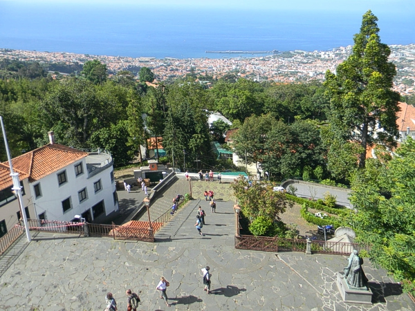 Im Juli 2014 verbrachte ich zwei Wochen meines Sommerurlaubs auf der Insel Madeira. Die 741 km² große “Blumeninsel” liegt knapp 700km westlich von Marokko im Atlantik. Die Hauptinsel steigt aus ca. 4000 bis 4500 Meter Meerestiefe bis auf 1860 m über den Meeresspiegel. Das vulkanische Archipel besteht aus Madeira, der Insel Porto Santo im Norden, den beiden Inselgruppen Ilhas Desertas und Ilhas Selvagens im Süden und ge-hört zu der Gruppe der makaronesischen („glückseligen“) Inseln.Das Archipel entstand vor ca. 40 bis 10 Millionen Jahren, Porto Santo erst vor ca. 7 Mio Jahren. Vermutlich wurde Madeira bereits im 6.Jh.v.Chr. von Phöniziern entdeckt. Hinweise auf ständige Besiedlung in dieser Zeit gibt es allerdings nicht. Erst um 1351 zeigt eine florentinische Seekarte erstmals die Inselgruppe. Ab etwa 1420 wurde Madeira auf Betreiben Heinrich des Seefahrers von den Portugiesen besiedelt, Getreideund Zuckerrohr angebaut. Als der Boden dann Anfang des 16.Jh. ausgelaugt war, stieg man auf Wein-Pro-duktion um. Die Verwaltung von Madeira wurde 1580 zentralisiert, als Portugal mit Spanien in einer Personalunion verbunden wurde. 1668 erhielt Portugal seine Unabhängigkeit zurück. Von 1801 bis 1814 wurde die Insel von England besetzt, um sie während der napoleonischen Kriege vor Frankreich zu schützen. Als 1852 der Großteil der Weinernte durch den Mehltau und Reblausbefallvernichtet wurde, verließen viele die Insel. Ab 1860 fanden dann Stickereiund Korbflechterei immer größere Verbreitung. Der in der zweiten Hälfte des 19.Jh. aufkommende Tourismus bildete zunächst eine bescheidene Ein-nahmequelle. Dieser gewann an Bedeutung, als 1964 der Flughafen bei Santa Cruz eröffnet wurde. Madeira ist zusammen mit Portugal seit 1986 Mitglied der Europäischen Union.Die Haupstadt von Madeira ist Funchal, hier leben 112.000 von den 245.000Einwohnern der nur 57 km langen und 22 km breiten Insel. Der Name der Stadt kommt aus dem Portugiesischen und bedeutet soviel wie “viel Fenchel” - weil man bei der Endeckung dort außerordentlich viel Fenchelvorfand.Die Stadt wurde im Jahr 1421 von João Gonçalves Zarco gegründet, 1508 erhielt sie die Stadtrechte durch Manuel I.1450 wurde Zarco zum Legatskapitän der westlichen Inselhälfte bestimmt, während der Osten mit dem Hauptort Machico an seinen Gefährten Tristão Vaz Teixeira fiel. Seit dem 16.Jh. ist die Stadt Bischofssitz.1803 forderte eine Überschwemmung600 Opfer. Daraufhin wurden die drei Flüsse begradigt und mit Kanälen befestigt. Dennoch gab es bei der letzen Flut im Jahre 2010 wieder etwa 50 Tote. Im Stadtwappen sind fünf Zuckerhüte und vier Weintrauben dargestellt. Tropische Parks, großzügige Promenaden und Fuß-gängerzonen prägen das Stadtbild.Die Rua de Santa Maria ist die Hauptstraße der Altstadt (Zona Velha), sie gilt als älteste Straße von Funchal. Der barocke Brunnen an ihrem Anfang versorgte die Bewohner bis in die 1960er Jahre mit Trink-wasser. Die heutigen Häuser stammen aus dem 18. und 19. Jh. und wurden erst ab 2010 wieder in einem Projekt mit Künstlern revitalisiert. Abends ist die Altstadt ein lebendiges, trendiges Vergnügungsviertel. Unzählige kleine Bars und andere Lokale locken Gäste mit Musik und leckeren Speisen.Ein zentraler Punkt der Stadt ist die im Art Deco Stil gestaltete, 9600m² große Markthalle mit dem Mercado dos Lavradores, dem Bauernmarkt. An dem mit Azulejos geschmückten Haupteingang preisen Blumenhändler ihre Waren an. Der Innenhof und die Galerie sind für Obst und Gemüsestände reserviert. Viele Händler reichen Früchte zum Probieren. In den Seitenräumen gibt es Fleisch, Wurst, Geflügel und Käse. Auch Korbwaren, Stickereien, Lederwaren und Sou-venirs findet man dort.Im hinteren Teil ist die Fischhalle ‘Praça de Peixe’, wo man auch Thunfisch und den für Madeira bekannten Degenfisch kaufen kann.Am östlichen Ende der Altstadt befindet sich an der Küste das Fortaleza São Tiago, in dem heute ein Museum für zeitgenössische Kunst unterge-bracht ist. Das Fort bildete bis Ende des 19.Jh. den Abschluss der Stadt-mauer und wurde 1620 fertiggestellt. Von den Aussichtsterrassen hat man einen schönen Blick auf die Stadt.Entlang der Prachtallee Avanida Arriaga kommt man am Palacio deSão Lourenço und am Denkmal des Stadtgründers João Gonçalves Zarco vorbei. Nach der ehrwürdigen Weinkellerei der Familie Blandy ‘The Old Blandy Wine Lodge’ gelangt man zur Kirche Sé Catedral.Mit dem Bau wurde 1493 begonnen, im Jahre 1514 wurde sie zur Kathedrale ge-weiht, seitdem ist Funchal Bischofssitz. Das Äußere der Kirche blieb seitdem weitgehend unverändert, im Inneren kann man den schönen Hauptaltar bewun-dern. Der und die acht Seitenaltäre der Basilika kamen aus Flandern und wurd-en aus den Erlösen des damals florierenden Zuckerhandels bezahlt.Das alte Zollamt war 1748 auf dem Mauern eines älteren Gebäudes aus dem frühen 16.Jh. errichtet worden und sollte auch als königliche Residenz dienen. König Manuel I. kam jedoch nie nach Madeira.Nahe der Uferpromenade der Altstadt im 'Parque Almirante Reis' ist auch die Talstation des Teleferico, einer Kabinenseilbahn, die zu dem über Funchal gele-genen Ort Monte führt. Der Höhenunterschied von 560m wird in nur 15 min auf nur 3718m bewältigt. An dem Morgen, als ich Monte besuchen fuhr, war gerade nicht viel los, so hatte ich eine Kabine für mich allein und konnte die herrliche Aussicht während der Fahrt genießen. Für die Hin- und Rückfahrt hatte ich 14,50 Euro bezahlt.Bis 1943 führte eine Zahnradbahn von Funchal hierher, erst ab dem Jahr 2000 ist die moderne Seilbahn in Betrieb. Die alte Bahnstation führt auf dem Platz ‘Largo da Fonte’ ein eher unbeachtetes Dasein und ist - wenn man’s nicht weiß - auch als solche nicht zu erkennen. Der Platz erhielt seinen Namen von dem Quell-heiligtum für die Ortspatronin Nossa Senhora da Paz. In einer Nische an dem Brunnen brennen stets Kerzen.Über dem alten Ortskern erh