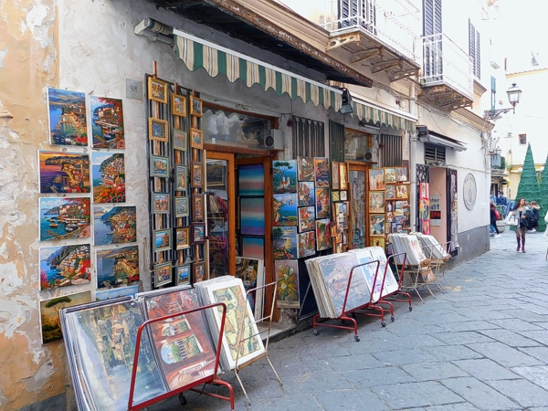 Zahlreiche Keramik-Ateliers bieten Artikel mit Stadt-Ansichten und Zitronen-
