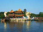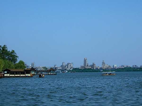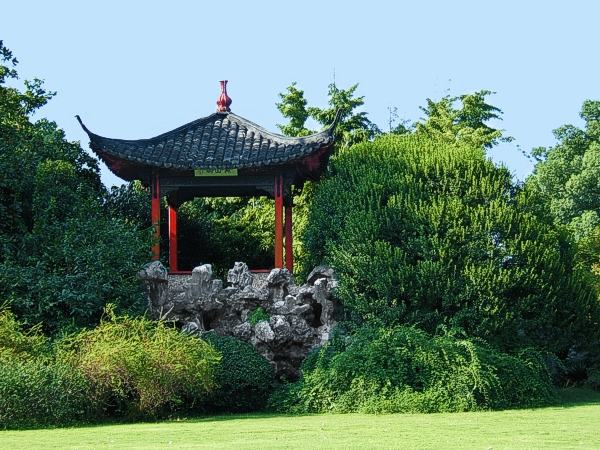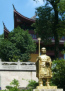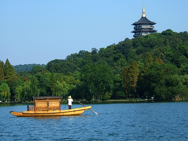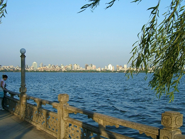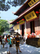 Im September 2005 reiste ich wieder für 14 Tage nach China. Diesmal fand das Training in der Industriestadt Changzhou statt, welche etwa 140 km nordwestlich von Shanghai, auf halbem Weg nach Nanjing liegt. Dort befinden sich auch zwei Produktionsstätten unserer Firma.Die Schulung dauerte knappe zwei Wochen und für das Wochenende hatten meine Kollegen für mich über ein Reisebüro eine Ausflugsfahrt nach Hangzhou organisiert. Das liegt ungefähr 190km südwestlich von Shanghai.So wurde ich am Samstag morgens von einem Reiseführer direkt am Ho-telzimmer abgeholt. Unten wartete eine schwarze Limousine mit einem Fahrer. Ich durfte auf der Rückbank Platz nehmen und fühlte mich fast wie ein Promi, wenn ich auf die weißen Handschuhe des Fahrers blickte.Der Straßenverkehr in China ist ein für uns unvorstellbares Chaos. Obwohl man generell rechts fährt, findet man die langsamsten Verkehrsteilnehmer meist auf der linken oder mittleren Spur. So wird dann einfach rechts überholt und dabei andere Fahrzeuge kräftig geschnitten und auch abgedrängt. Das wichtigste Utensil an jedem Fahrzeug ist eine möglichst lauteHupe. Radfahrer verwenden oft einen Kochtopf, der mit einem Klöppel geschlagen wird als Klingel-Ersatz. Spurmarkierungen sind ohnehin nutzlos, man überfährt doppelte Sperrlinien, Linkskurven werden grundsätzlich so geschnitten, dass das linke Hinterrad beinahe über den Randstein fährt.Auf unserer Fahrt nach Hangzhou hätte der Fahrer nach unseren Maßstäben so an die 50 Anzeigen wegen Nötigung und vielleicht noch einmal so viele für andere Vergehen (Sperrlinie überfahren, rote Ampel missachtet, usw.) bekommen.Als Fußgänger kann man die Straße auch auf einem Zebrastreifen nur mit äußerster Vorsicht und unter Lebensgefahr überqueren. Die Autos machen da extra einen Bogen in den Gegenverkehr, oder drängen den Nebenmann in den Gegenverkehr, um wegen der Fußgänger bloß nicht anhalten zu müssen. Erst wenn ein Fußgänger schon so gut wie unter dem Wagen liegt, wird (vielleicht) angehalten. Nach ca. zweieinhalb Stunden Fahrt erreichten wir dann die Stadt Hangzhou. Auch hier prägen viele moder-ne Hochhäuser das Stadtbild und auf unzähligen, riesigen Baustellen werden immer noch mehr Wohnung-en gebaut.Hangzhou liegt an der Mündung des Flusses Qiantang. In Hangzhoubeginnt auch der Kaiserkanal, eine wichtige Verbindung in den Norden Chinas. Im gesamten Verwaltungsgebiet leben hier auf einer Fläche von 16.600 km² ungefähr 8,8 Mio Einwohner.Hangzhou ist eine der Wiegen der chinesischen Zivilisation, die „Liangzu-Kultur“ lässt sich bis vor 4700Jahren nachweisen. Die schriftlich dokumentierte Geschichte der Stadt reicht bis in das Jahr 221 v.Chr.zurück. Hangzhou war auch die Hauptstadt der südlichen Song-Dynastie (1132-1276). Der Chinareisende Marco Polo soll die Stadt als „schönste und großartig-ste Stadt der Welt“ bezeichnet haben. Zu seiner Zeit, im 13. Jahrhundert, hatte die Stadt den größten Hafen der Welt. Heute ist es keine Hafenstadt mehr, denn im Laufe der Jahrhunderte ver-landete die Bucht. Hauptattraktion in Hangzhou ist der Westsee (Xihu) mit über sechzig einzelnen Sehenswürdigkeiten.Nachdem wir unser Hotel für die Nacht von Samstag auf Sonntag bestätigt hatten, machten wir uns auf den Weg zur West Lake, dem historischen Teil der Stadt. Dies ist eine Grünanlage mit einem großen See westlich der Stadt. Im See gibt es auch drei kleine Inselnzu denen man mit Booten fahren kann. Zunächst besichtigten wir aber den Tempel des Generals Yue.Der patriotische General Yue Fei lebte von 1103-1142 in der Song-Dynastie und kämpfte erfolgreich gegen die Dschurdschen, bis eine Intrige des Kanzlers und Erzschurken Qin Hui ihn das Leben kostete.20 Jahre nach seinem Tod wurde er rehabilitiert und wird seitdem von den Chinesen als Vorbild für Hin-gabe und Treue geehrt. In der Tempelhalle sieht man General Yue sitzend und an den Wänden sind Maler-eien mit Szenen aus seinem Leben.Ein schöner Torbogen schmückt den Eingang zu General Yue Feis Grab-stätte. Links und rechts von dem Tor sieht man jeweils zwei knieende Figurenhinter einem Eisengitter. Es handelt sich um den ehemaligen Kanzler Qinund drei seiner Komplizen, die diese Verschwörung angezettelt hatten. Die Figuren werden – trotz Verbotes – noch heute bespuckt.Mit dem Boot fuhren wir dann zu der im Zentrum des 5,65km² grossen Sees gelegenen kleinen Insel, wo der Mid-Lake-Pavillon leider eben renoviert wurde. Somit war dieser als Fotomotiv nicht attraktiv genug. Ein kleiner Pavillon am Seeufer war da besser geeignet. Sonst ist auf dem winzigen Inselchen nicht viel mehr zu sehen. Interessant sind auch die vielen verschiedenen Boote, welche den See befahren. Es gibt einfache, offene Ruderboote, ähnlich den Gondeln in Venedig, solche mit einem aufgebauten kleinen Häuschen, das vor Regenund Sonne schützt und Motorschiffe aller Größen mit mehr oder weniger aufwändigen Aufbauten.In der Südhälfte des Sees befindet sich eine Insel, auf der drei Teiche angelegt sind. "Three Pools mirror-ing in the Moon" ist eine sehr beliebte Ausflugsinsel.Inmitten zweier Teiche steht jeweils ein Teehaus, die eben auch renoviert wurden. Eines ist über eine neun-fach gewinkelte Brücke erreichbar - da wurde auch eben dran gebaut.Am Südufer der Insel sieht man drei kleine Laternen im Wasser stehen. Diese wurden in der Song-Zeit errichtet, um die Boote vor zu flachem Wasser zu warnen. Die Informationstafeln für Besucher sind bereits in chinesischer und englischer Sprache gehalten und sehr ansprechend gestaltet.Das Wetter war sehr warm an diesen Tagen, es wird wohl über 34 Grad gehabt haben, jedenfalls kam ich ganz gewaltig ins Schwitzen. Ich wurde aber von meinem Fremdenführer immer mit ausreichend Trinkwas-ser versorgt, das es dort überall zu kaufen gibt.Auf dem Bild unten mit dem kleinen Boot sieht man im Hintergrund ein Stück von der großen "Thunder PeakPagoda", welche ebenfalls auf einem kleinen H