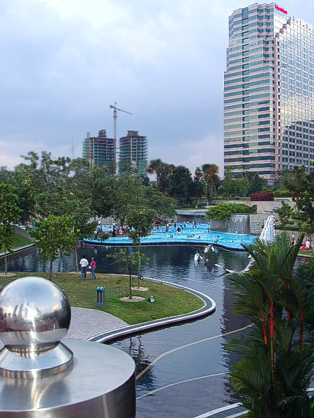Kuala Lumpur ("schlammige Flussmündung") ist die Hauptstadt Malaysiens, die größte Stadt des Landes und zugleich auch Malaysiens administratives, kulturelles und ökonomischesZentrum. Von den meisten Be-wohnern wird die Stadt einfach "K.L." genannt. Auf ca. 244km² leben hier rund 1,98 Millionen Menschen. In der Stadt sind verschiedene Kulturen und Reli-gionen vertreten, man sieht die Minarette der Moscheen, Kirchtürme christlicher Kirchen, chinesische Pa-goden und indische Tempel.In der Hauptstadt Kuala Lumpur - gibt es nicht gar so viele Sehenswür-digkeiten. Auf dem Bild rechts hat man bereits soweit "alles" im Blick: Im Vordergrund der ehemalige britische Gouverneurspalast, heute oberster Gerichtshof, dahinter unübersehbar der Fernsehturm und links daneben die bekannten PetronasTowers. Zum ersten Mal war ich im Jahre 2000 in Malaysien. Im November 2004 durfte ich für eine Woche dem nebe-ligen und kalten Herbst auf der Schwäbischen Alb entfliehen und in Kuala Lumpur für unsere Mitarbeiter im Raum Südost-Asien eine Schulung durchführen. Auch 2007, 2010, 2013 und 2015 war ich beruflich in der Stadt. Kuala Lumpur wurde 1857 von Zinnsuchern unter der Führung des malaiischen Radschas Abdullah am Zusammenfluss der Flüsse Gombak und Klang mitten im Urwald gegründet. Im Jahr 1957 wurde K.L die Hauptstadt der Föderation Malaya, erhielt 1972 den Stadtstatus, wurde 1974 zum Bundesterritorium und bekam eine vom Staat und Sultanat Selangor unabhängige Verwaltung.Der K.L.-Tower oder Menara ist mit 421m Höhe der zweithöchste Telekommunikationsturm in Asien und der siebthöchste der Welt. Die Fahrt mit dem Expresslift zu der 277m hoch gelegenen Aussichtsplattformkostete nur 15 RM (Malaysische Ringgit = ca. 3 Eur). Mit einer Geschwindigkeit von 5,83 m/s ist man in weniger als einer Minute am Ziel und kann von hier einen atemberaubendenBlick auf die Stadt genießen. Wer den Hügel Bukit Nanas, auf welchem der Turm steht, nicht zu Fuß erklimmen will, dem steht ein kosten-loser Shuttlebus zur Verfügung. Bei den tropischen Temperaturen machte ich von diesem Angebot gerne Gebrauch. Weiter oben gibt es ein Drehrestaurant, es empfiehlt sich jedoch dort vorher zu reservieren. Der Eingang zum Menara (=Minarett) ist mit unzähligen, wunderschönenFliesen gestaltet und dem Eingang zu einer Moschee nachempfunden. Bevor man den Aufzug betritt, befindet man sich in einer kleinen, runden Kammer, welche an der Decke mit einem Kunstwerk aus Mosaik-Spiegeln verziert ist. Nachts ist der Turm mit vielen Lichtern herrlich be-leuchtet und wie am Tage auch weithin sichtbar. Obwohl die Sicht wegen des Smogs nicht besonders gut war, gelangen mir dennoch einige schöne Aufnah-men der Stadt durch die Glasscheiben der Aussichtsplattform. Seit meinem letzten Besuch sind viele Wohn-siedlungen am Rande der Stadt neu gebaut worden und auch das Zentrum hat durch durch moderne Architektur an Attraktivität sehr gewonnen.In der Bildmitte auf dem Bild rechts außen erkennt man hier eine Grünflächeund davor den Sultan Abdul Samad Palast, in dem heute der oberste Gerichts-hof untergebracht ist. Zu diesem Gebäude wollte ich als nächstes und machte mich zu Fuß auf den Weg dahin. Wie man auf dem Foto erkennen kann, ist es ja nichtweit, doch bei 30 Grad und 90% Luftfeuchte kann der kurze Weg auch ganz schön lang dauern. Der Spaziergang war jedoch sehr interessant, da ich auch mal durch Straßen kam, wo es viele kleine Geschäfte in den Arkaden der Häuser gab.Im historischen Zentrum erinnert das alte Sultan Abdul Samad Buildingan die englischenKolonialherren. Das Gebäude wurde von den Briten1894-1897 für die Verwaltung ihres Kolonialreiches errichtet. Bis zum Bau der modernen Wolkenkratzer war dieses Gebäude das Wahrzeichen von Kuala Lumpur.Wer genug hat von der Hektik der Stadt, dem empfiehlt sich ein Besuch des Lake Gardens, des ältesten Parks von Kuala Lumpur und zugleich grüne Lunge der Stadt. Die Parkanlage wurde im hügeligen Westendes Stadtzentrums um einen künstlichen See herum angelegt. Außerdem gibt es noch den Orchideengarten wo auf einer Fläche von un-gefähr einem Hektar 700-800 Orchideengattungen wachsen. In Malaysien sind ertwa 3000 Gattungen heimisch. Der Hibiskusgarten ist ein einziges blühendes Wunder. Über 2200 unterschiedliche Hibiskuspflanzen sind hier zu bewundern. Sie ist auch Malaysias Nationalpflanze.Der Schmetterlingspark ist die Heimat von 6000 Schmetterlingen. Etwa 120 in Malaysien lebende Arten werden hier repräsentiert. Es ist der größte Schmetterlingsgarten der Welt.Der Vogelpark in Kuala Lumpur ist der größte Vogelzoo in ganz Südostasien mit über 5000 Vögeln. Im Hirschpark leben Gruppen von Moschushirschen, die als kleinste Huftiere der Welt gelten. Für die meisten Teile des Parks ist der Eintritt frei, ausgenom-men sind der Schmetterlingspark und der Vogelpark.Doch die Zeit reichte leider nicht aus, um auch diese Sehenswürdigkeiten zu bestaunen. Stattdessen ge-noss ich einen Spaziergang durch die Grünanlagen im Zentrum neben den Petronas TwinTowers. Dort befindet sich auch ein großer Kinderspielplatz mit einem flachen, aber riesengroßen Planschbecken. Das Planschen ist natürlich nur den Kindern erlaubt, doch die toben sich hier richtig aus.Der Blick entlang eines Turmes der Petronas Twin Towers nach oben eröffnet eine imposante, atemberaubendePerspektive. Besucher können für nur 10 Ringgit bis zu der 170m hoch gelegenen, zweistöckigen Ver-bindungsbrücke fahren.Doch nach wie vor ist die Anzahl der Besucher pro Tag auf maximal 1600beschränkt und wer sich nicht schon zeitig am Morgen anstellt, bekommt keine Karte mehr. (Der Verkauf beginnt um 08:30 Uhr, nach zwei Stunden gibt es keine Karten mehr...) Von einigen habe ich auch gehört, daß die Aussichtnicht so toll sein soll, da die beiden Türme die Sicht sehr ein-schränken.Auch nachts sind die beleuchtetenPetronas Türme ein imposantes Wahrzeichen der Stadt. In den unteren Etagen der Towers befindet sich d